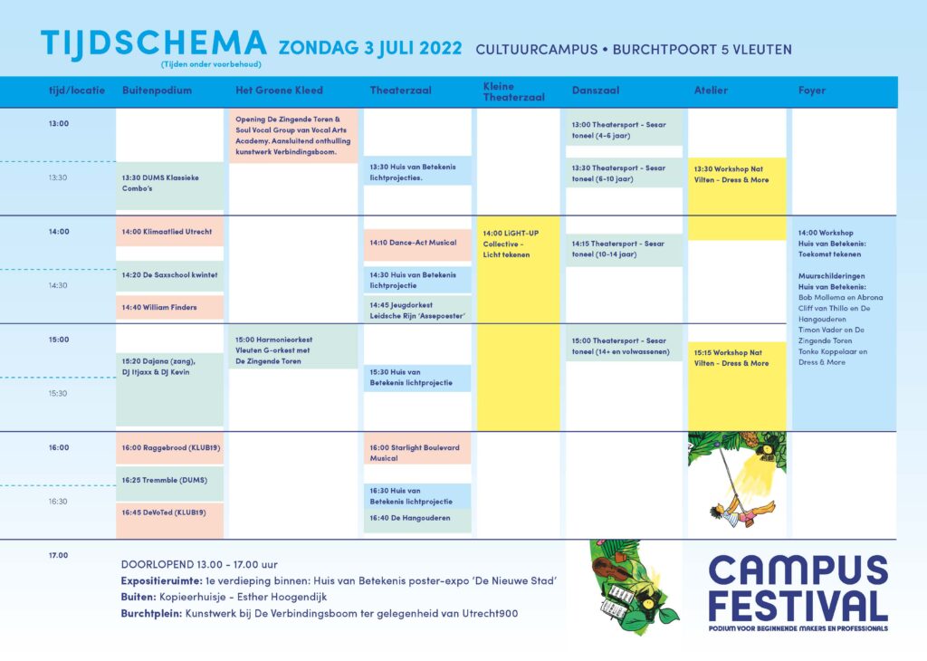 Kijk vooral ook even in het blokkenschema voor de optredens en doorlopende exposities/activiteiten van andere groepen en verenigingen.